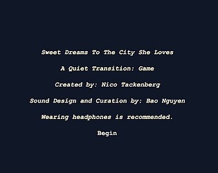 Explore games tagged lullaby on itch.io · Upload your games to itch.io to have them show up here.