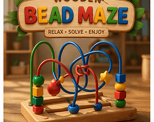 Relaxing wooden puzzle game where you move beads along colorful wires.