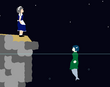 A lantern youkai guides Hata no Kokoro through a blizzard in this Touhou Project fangame.