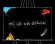 A solitary dolphin creature creates an abstract painting by throwing a tantrum