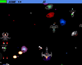 Scrolling space shooter. Shoot aliens, avoid asteroids, buy new ships!