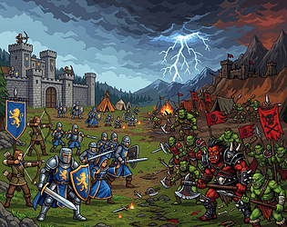 Side-scrolling incremental strategy — recruit humans and mercenaries to hold the line against Orcs