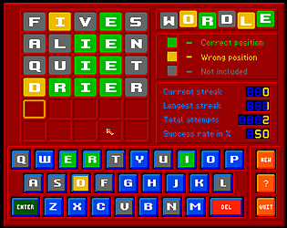 Explore games tagged Wordle on itch.io. A world game where you have six tries to guess a five letter word. Each try reveals whether you have any letters correct 路 Upload your games to itch.io to have them show up here.