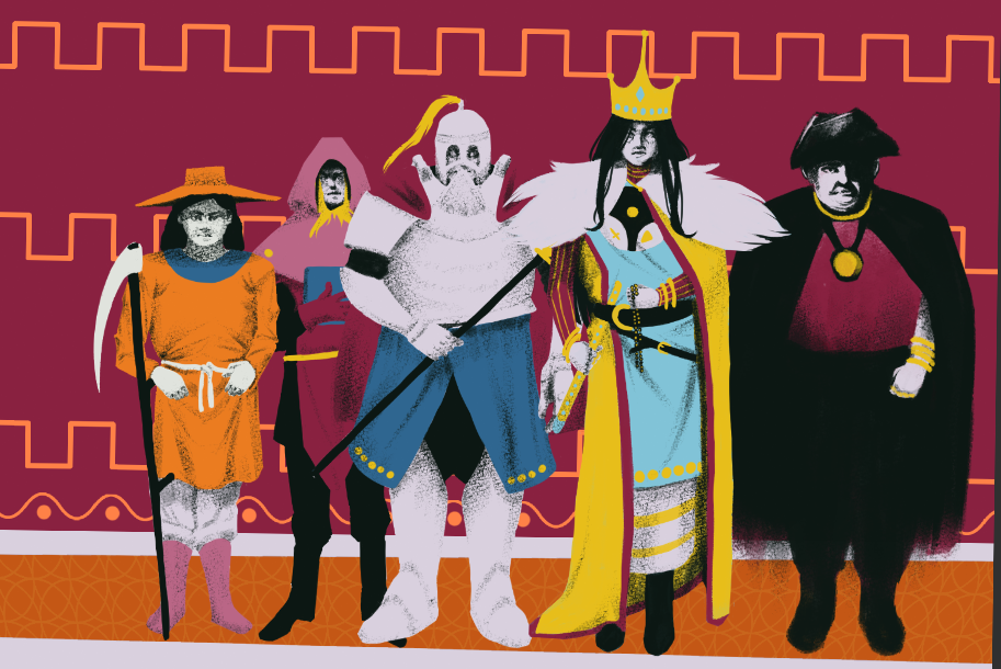 The idea was that the opposite worlds are Court and Peasants and that you need to balance their needs! Rich and poor, powerful few vs powerful many, and so. :)
