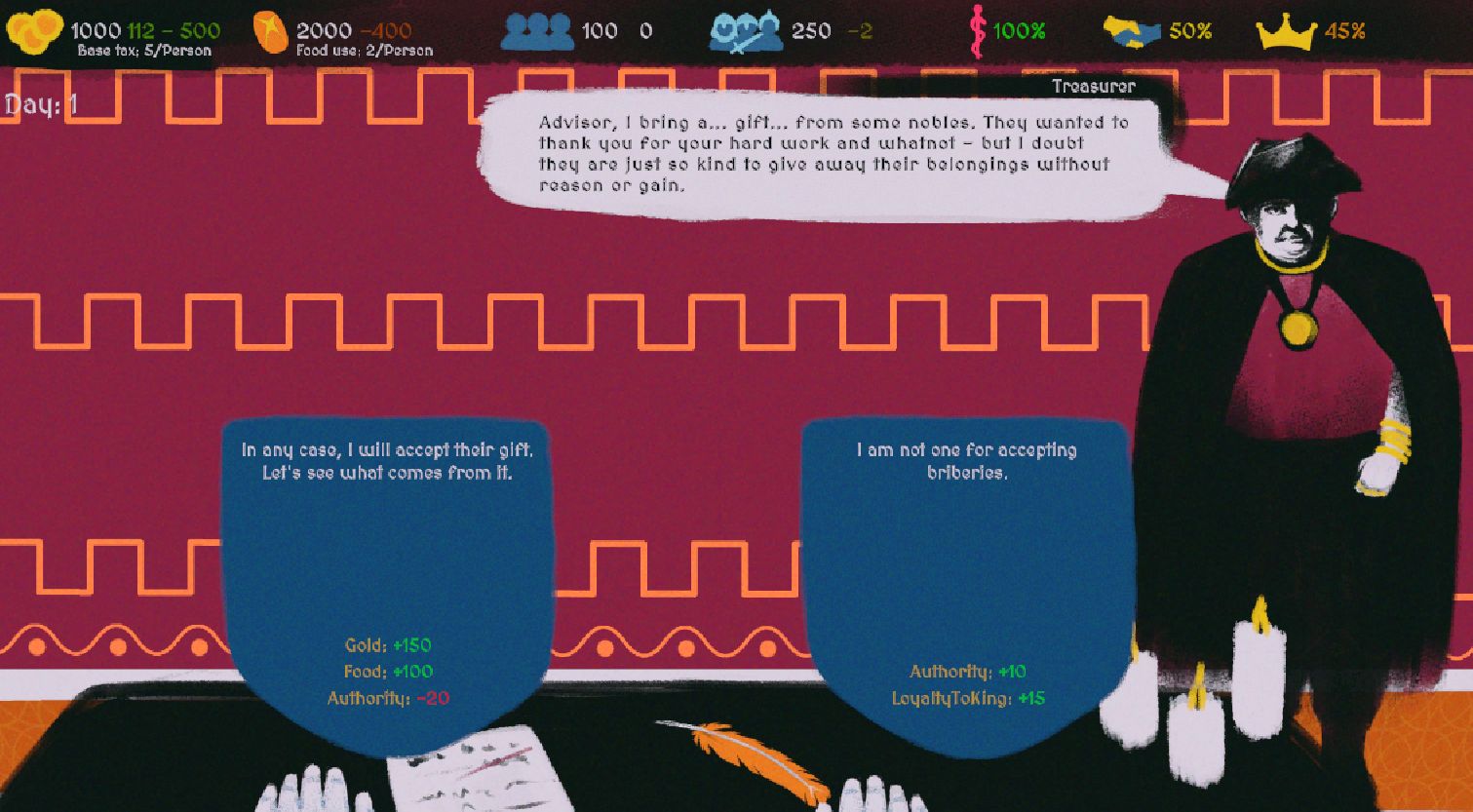 Favourite one I have played so far! With some playtesting and balancing could be a really super game. I managed to wipe out all my peasants on day 27, but as I still had a large army my head cannon is we became a nomadic tribe and wiped out vessia. Great job!