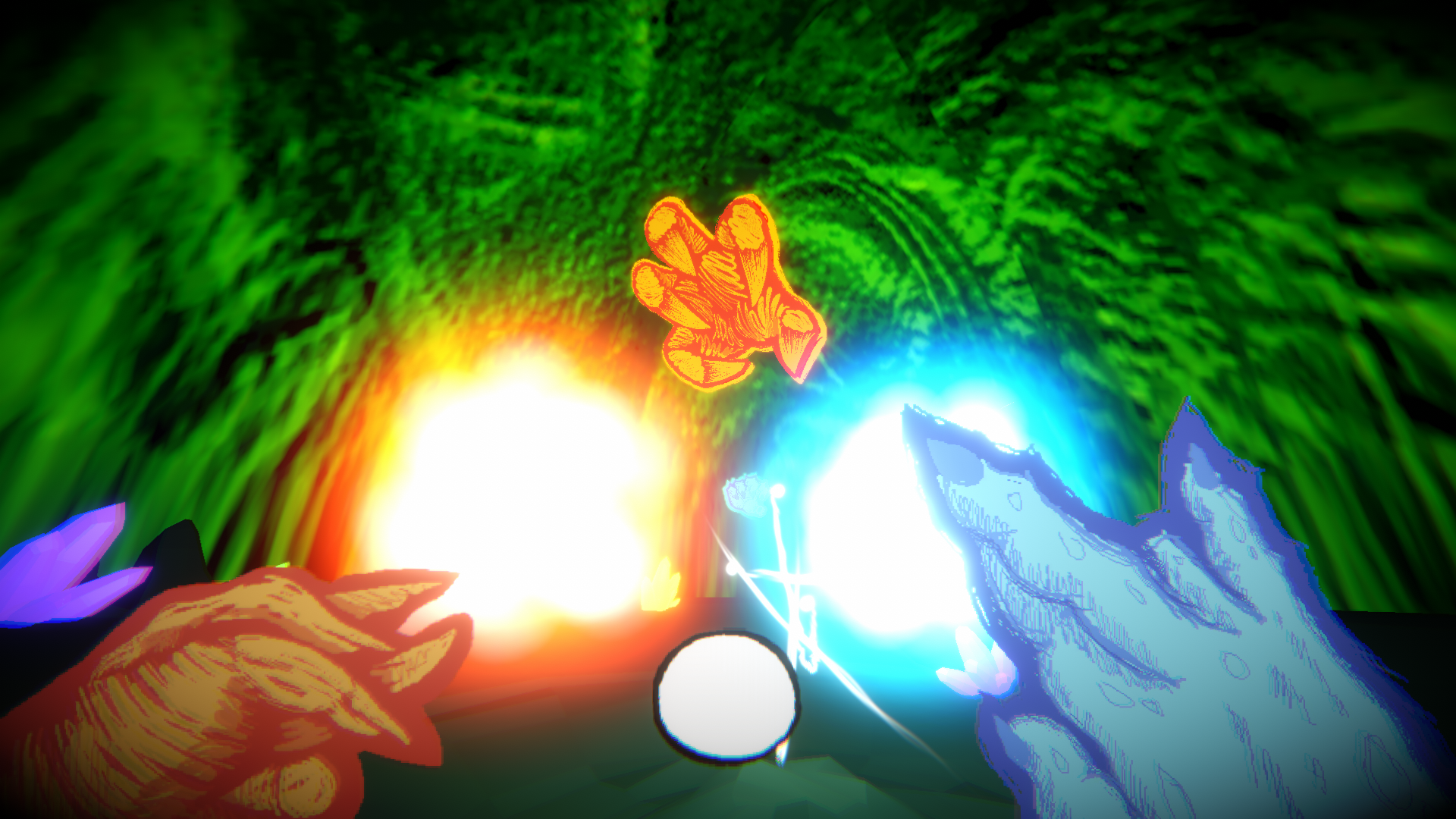 I like the art and the sound effects. It was kind of hard to feel skillful shooting the slow projectiles at the fast moving enemies, though. Mostly I just had to spam. Having to use the correct hand on the correct enemy was a good touch.