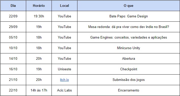 A Game Jam será híbrida e ocorrerá de 14 a 22 de outubro de 2021
