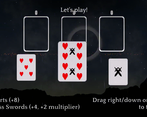 Unfortunately, I got stuck on place where we need a card with "a broken heart". No combination of cards would let me through. I am not sure if this is intended or not. But if it is it would be nice to have a "start again" button. I think I was missing an Ace of Hearts, but never got it.