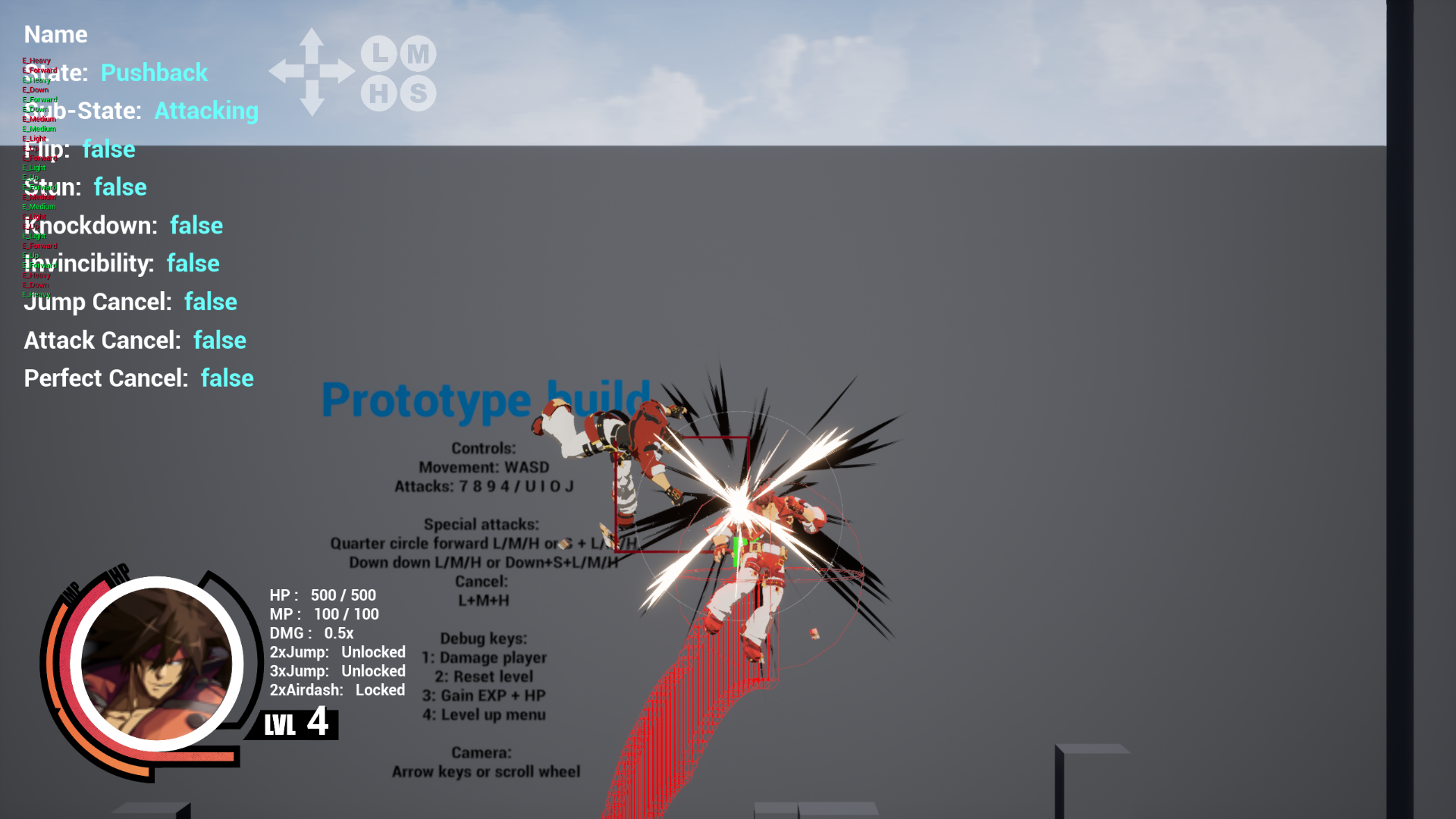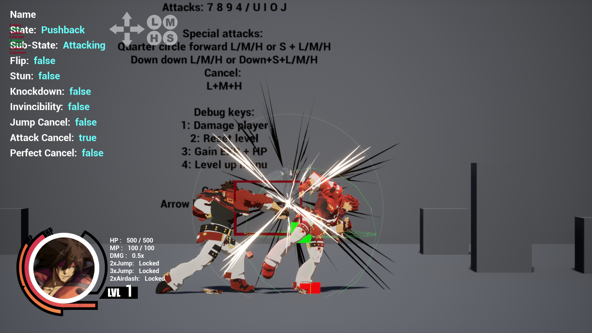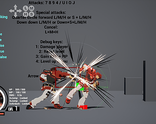This has some pretty cool ideas. It feels great to play with all hits feeling meaty and the camera effects, which certainly look like the ones from Guilty Gear. The leveling system is intriguing, I thought that was cool, though right now there's no way to raise it outside of the debug system, would be interesting to see how this could be integrated in a full game. One thing that I would also hope to see in future demos would be defensive stuff, blocking, maybe burst etc.