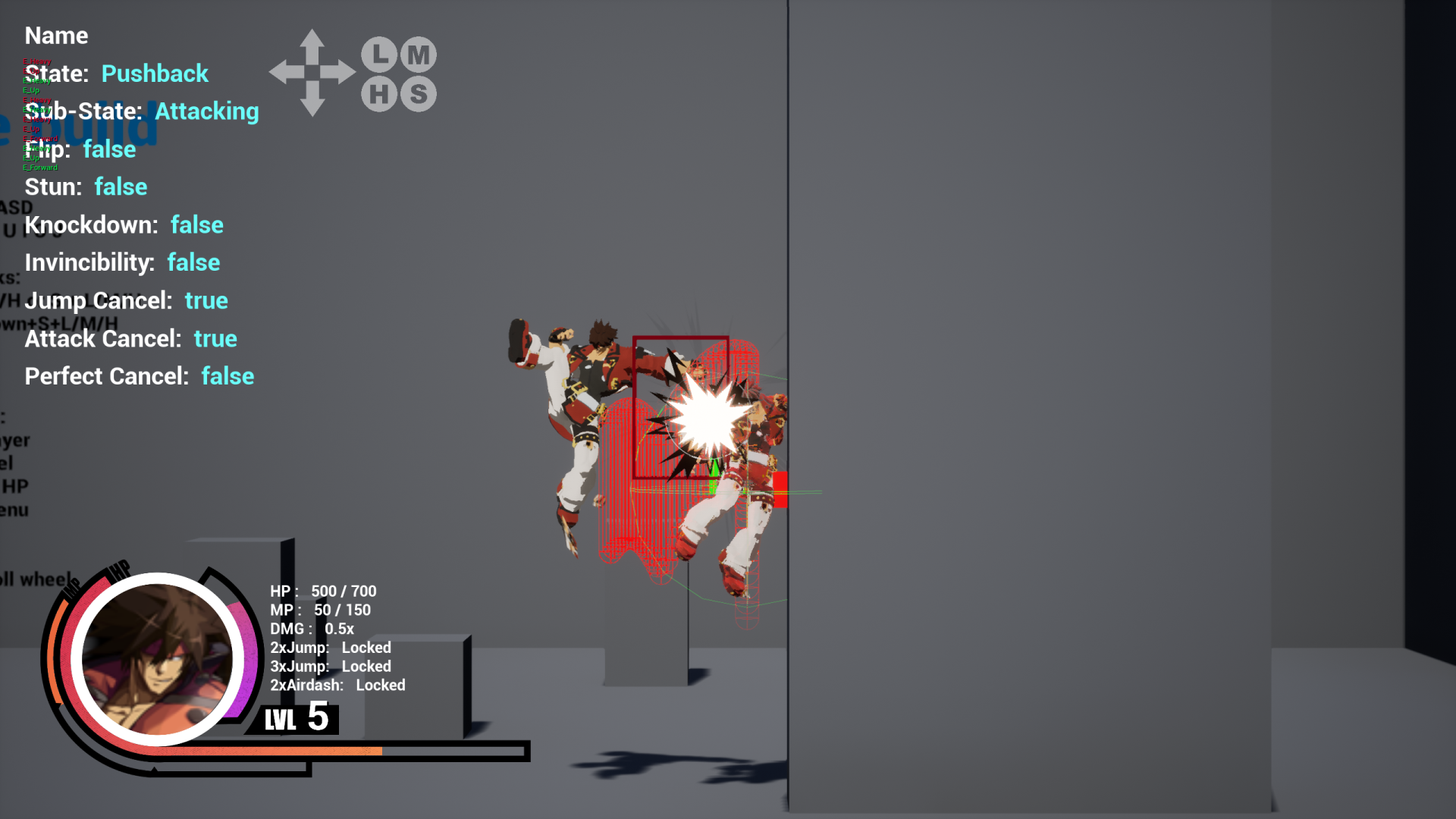 Originally I also wanted special moves to be upgraded through leveling, but it would've been way too much work to have 3+ variations of every special move and It would've limited how many moves a character could have. So I opted for upgradeable stats, gauges, and mobility.
