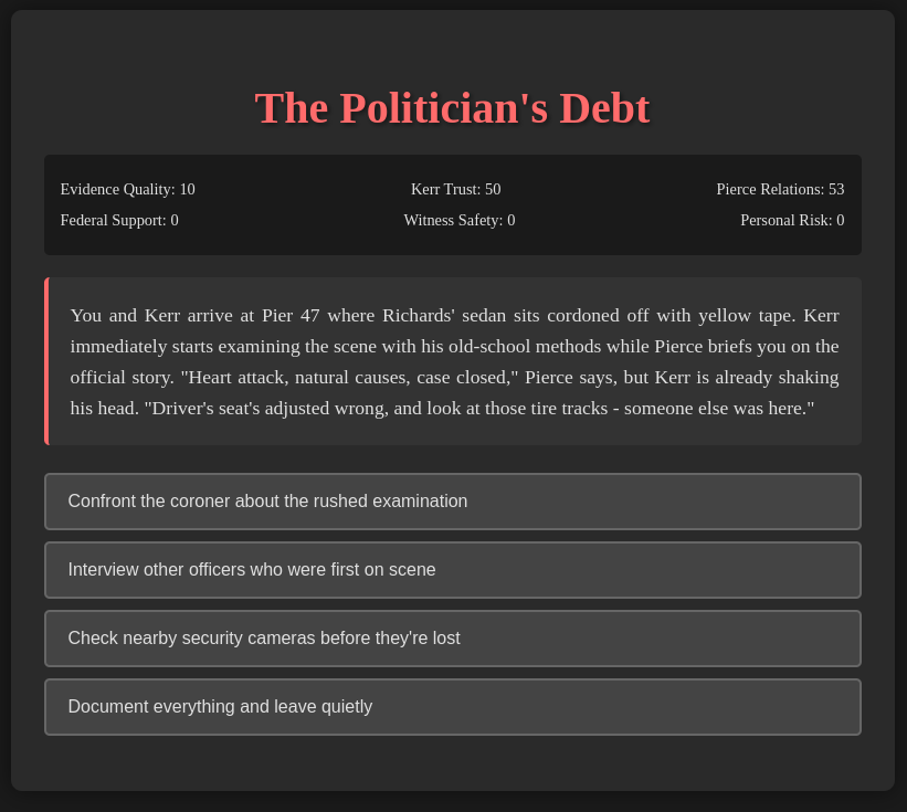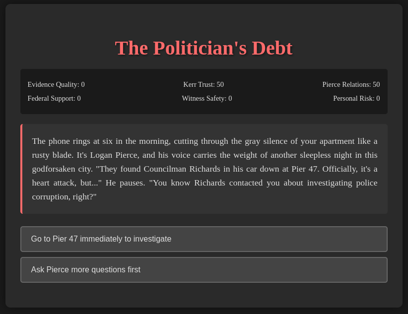 Dark City Detective - The Politican's Debt's itch.io pageResults