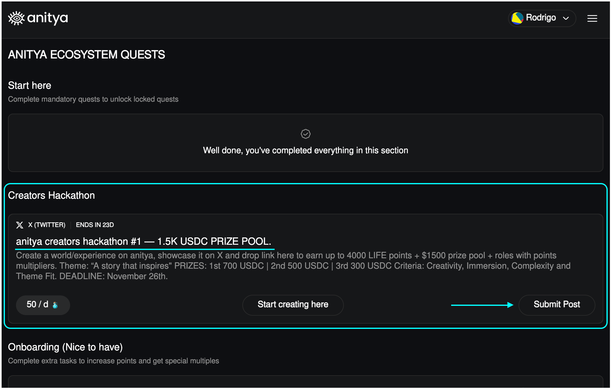 ⚠️ NOTE: only submissions at our Earn Program (https://earn.anitya.space) at the above Quest will be considered for the prize!