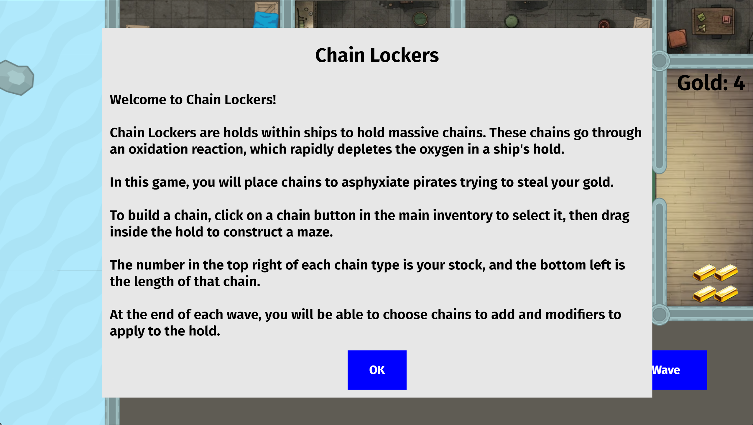 Very fun yet surprisingly morbid game with a unique take on the theme, and I learned something new! Loved the jaunty tunes as the pirates marched to their death, definitely helped stop the game feeling too dark. The trade-off between trying to fit in one long chain versus the flexibility of multiple short chains was interesting, as well as the choices between the different perks and downsides. The game did get a little buggy at one point with pirates floating through chains when I had a lot of Fool’s Gold in the later levels. In the end, I managed to make a pretty successful design, but I was unable to progress past the next upgrade screen (presumably because it had nowhere left to place any more trees or crates):