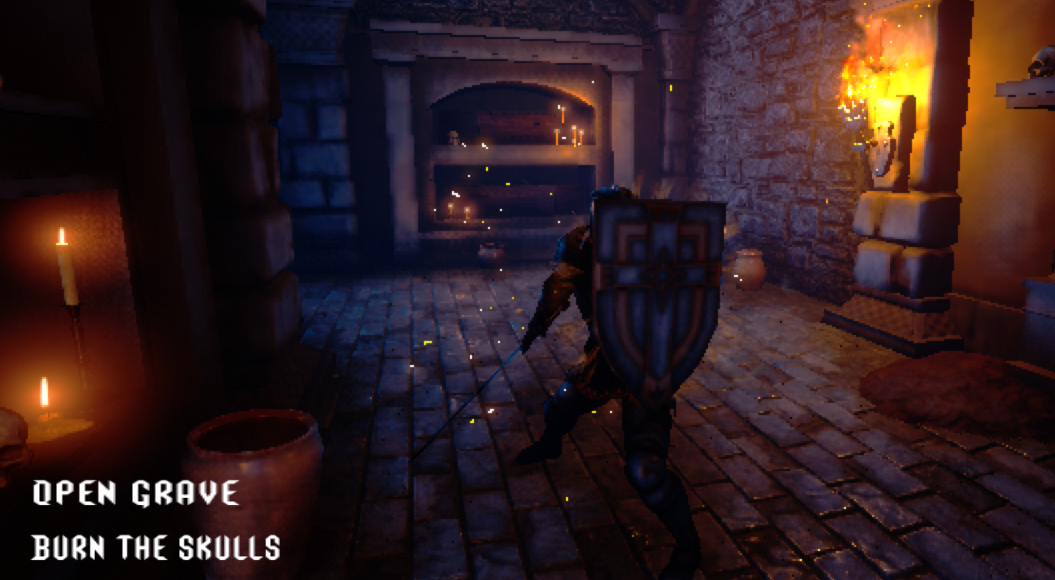 The environment felt too dark for me as the game cannot be full-screened as well. So as far as I can tell, this seems to be a build issue. Its pretty much too dark to play so sadly couldnt get past the first skeleton.