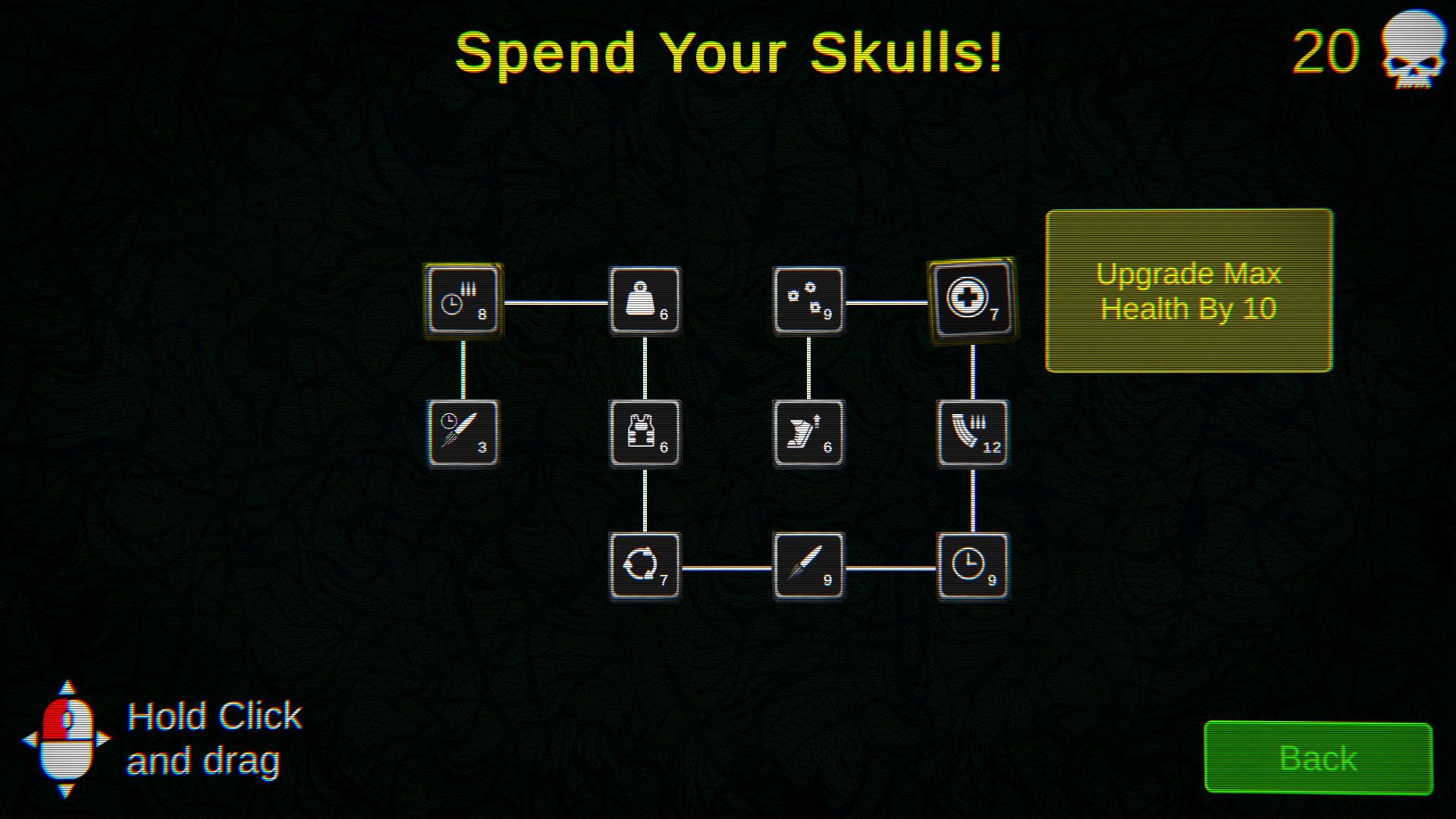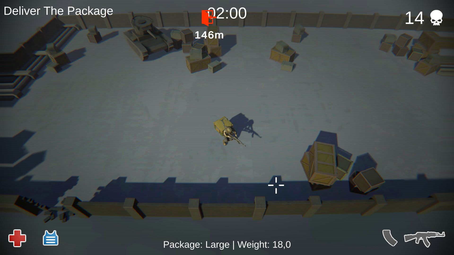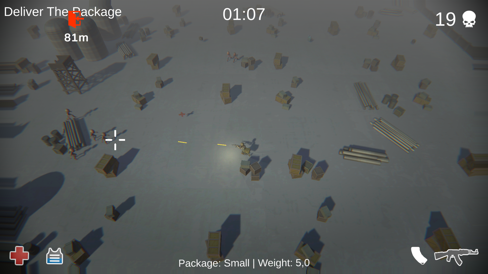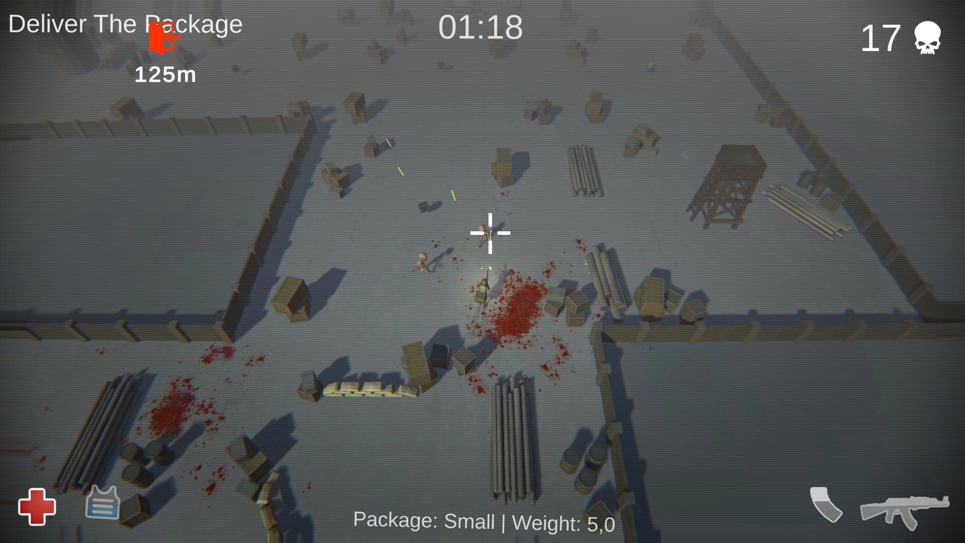 I actually got pretty hooked to this, I love the idea of needing to deliver packages in a wasteland. Since you play as a soldier, perhaps it's the result of a war? Anyways, the enemies are waaaay too creepy... They look like baby human-alien hybrids... The game play loop is simple but fun, core mechanics are there, and the upgrade system is really cool! If I had one complaint it'd be that when you fully upgrade your bullet speed, your magazine size doesn't grow so you shoot all of your ammo out extremely fast.