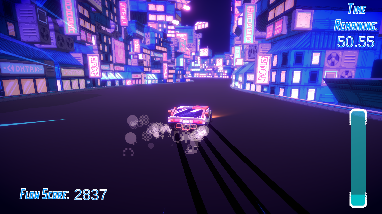 Visually and audially really nailed the retro Japan + scifi racer vibes. I've heard racing physics notoriously can take a long time to get right, so props on the great effort in such a short time!