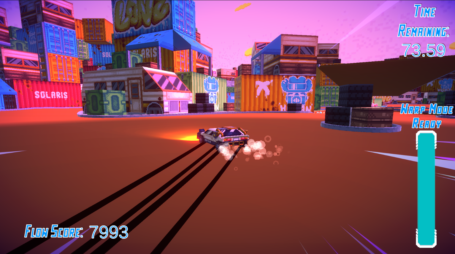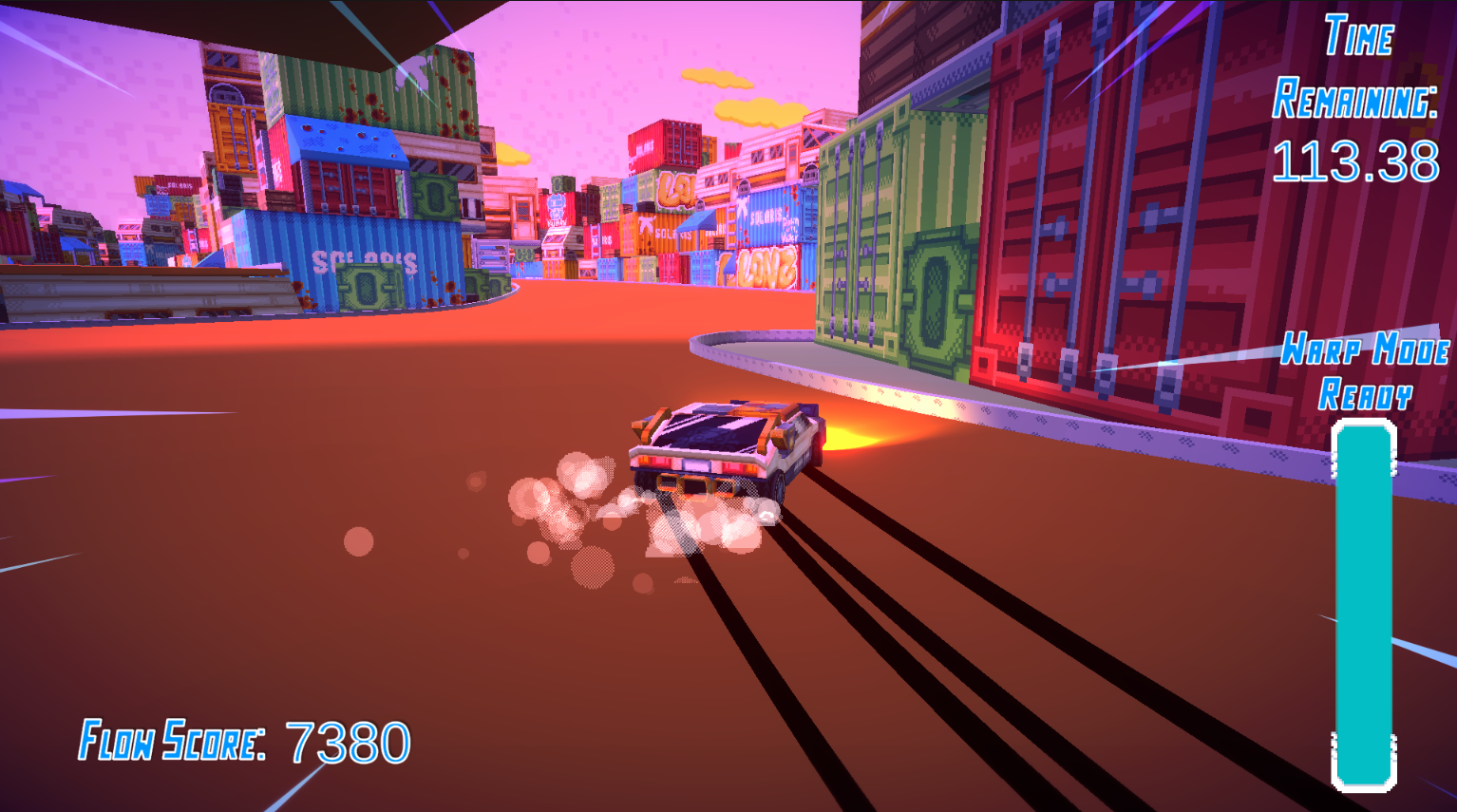 Really nice atmosphere. It was tough to get used to the mechanics but once I started to get a hang of things it felt really good to drift. I kept going for a while but my run ended when I ran into some invisible walls blocking the track, probably after 5 or so warps. Still, this game felt pretty chill and really nailed the vibe you were going for. Well done!