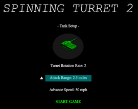 SPINNING TURRET 2 (left click with mouse to launch full screen and activate keyboard) You are a tank gunner surrounded on all sides with just 16 shells. Your turret spins clockwise automatically . Time your shots, manage your ammo, and dest...