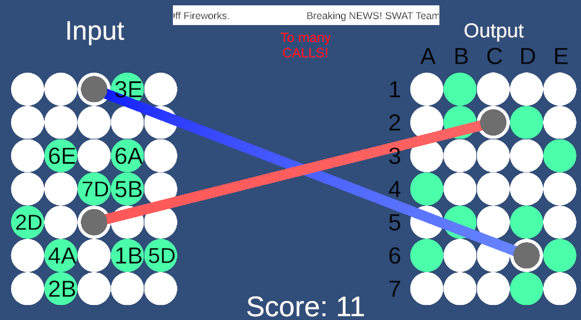 The player is a phone operator for Emergency calls. Their job is to connect the inputs on the left, to the indicated outputs on the right.