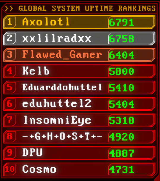 Very fun game! The minigames were very enjoyable, my only criticism is that the sine wave minigame was far too difficult compared to the rest. The corrupted looking UI looks great, you really nailed the art for this game. Good game!