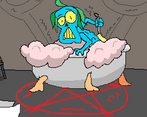 Very cool idea! Funny scene summonning a deamon while it takes a bath!