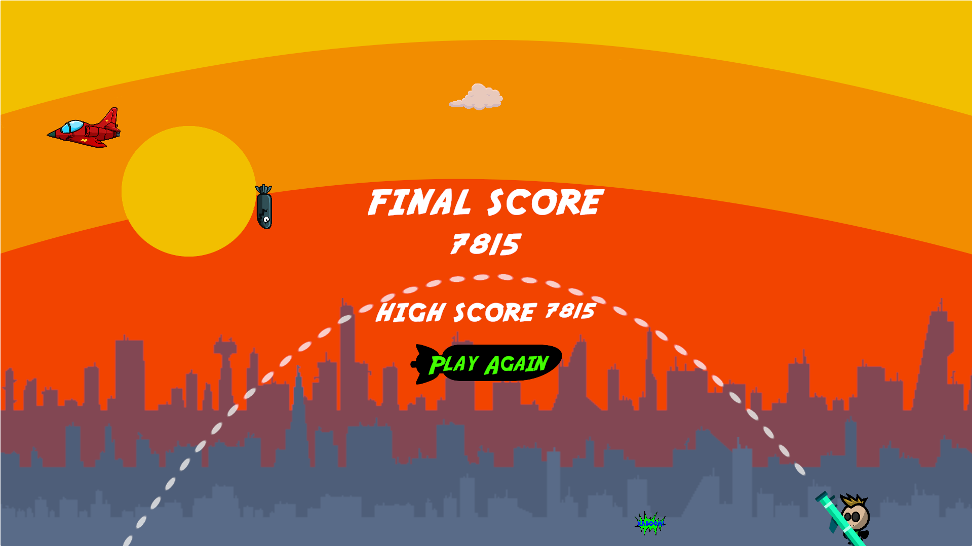 Art - Player, Bazooka, clouds, planes, torpedo, buildings, skylines