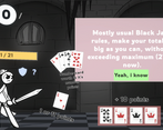 Combining blackjack as a combat mechanism is interesting! I enjoyed this, really well done.
