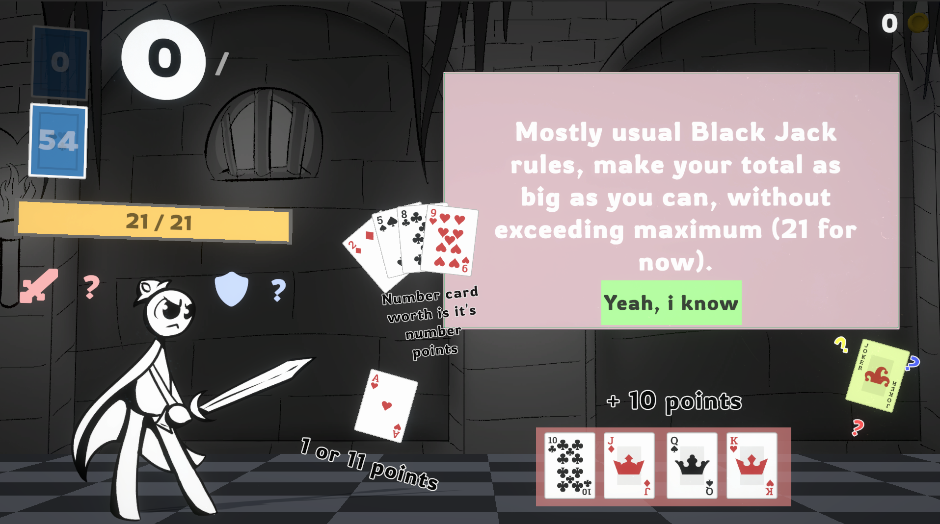 Fantastic game! Progressive black jack is a neat idea and would make for a fantastic pvp kinda of game with a tournament style battle progression kinda think 1v1s in a fortnite size lobby that progress the decks and stats. Or a rouge like! Great work! <3 *this game was live reviewed here: twitch.tv/gratefulllyivory (will post vod after stream)