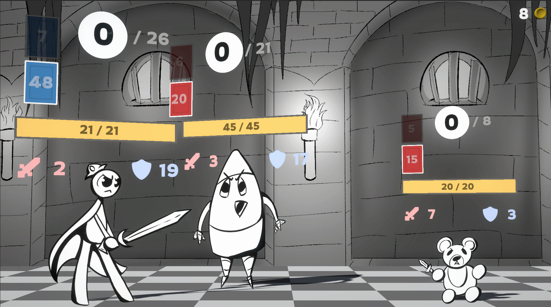 The game is really great! Art is very adorable and feels good to look at. Overall, mechanics like the shop and combat feel very polished, and the effect, like a cardboard effect and shadow casting, is really done well. But there is something that I feel off. The combat is fun because of the risk you have to take, but it's really gone at last because when you have armor upgrade that overwhelms your enemy's attack, like (In last boss: 40 for max attack of 30), you no longer have to risk anything and become invincible. I think having some kind of armour loss would be great for both sides because the gameplay is really long when we can't hurt each other. I also feel like the health isn't really there in the late fights because if the stat flips, I would get one-shot. One catch: what if we never upgrade our attack (18-21) and only on defense, will it be able to defeat the final boss (def 25-30), or will it become a soft lock? Anyway, it was a really amazing and fun experience.