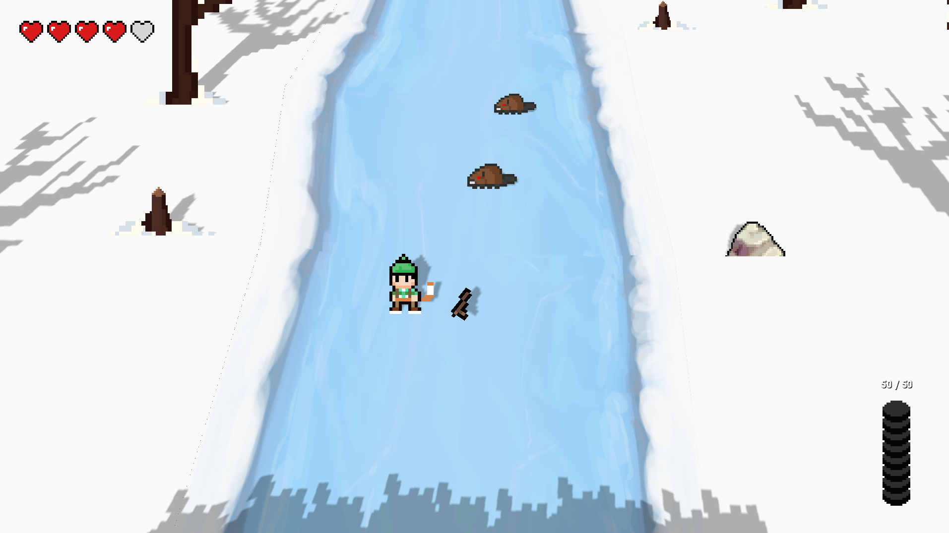 Love it! Great work with the hockey pucks. The physics works really well and allow for ricochet hits on other beavers which I thought was a great touch - intended or not! The drift on the ice skating felt really natural as well. I think you could add a hit animation or knockback effect to add to the overall game feel but apart from that it was great!