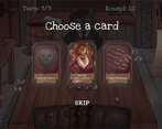 Overall pretty cozy chill game, sound effects and visuals are great as well. Just wish you can drag the card out to play it (I've been conditioned by a few TCGs :P). Managed to win against the 50HP guy as well, though I would say there were a few close calls there.