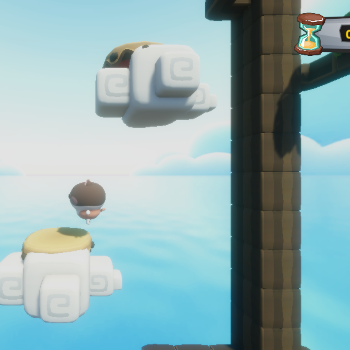 The introduction of new mechanics over levels (the bounce pad, then the clouds, and the combination of both) feels perfectly paced and keeps it interesting! This also really hit that perfect sweet spot in difficulty - it's just the right amount of challenging and rewarding, which is an incredibly difficult balance to find within the window of a jam.