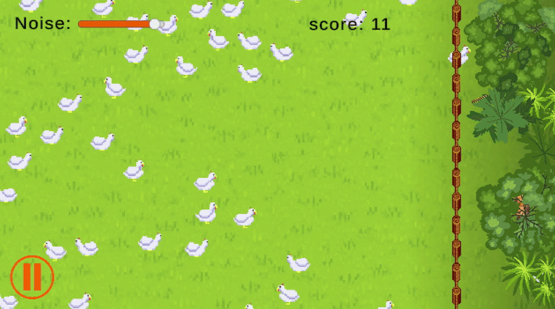 This game is really cute! We couldn't find a way to expand the screen which would have been nice. Having the noise meter reflecting the chicken's volume as they startle rather than the players movement was a nice touch compared to similar games.