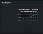 Start investing your 1m dollar fund in AI and tech startups, hit massive payouts if you hit perfect valuation, and optionally double down or "Risk it" for a big multiplier if you beat the competitor.