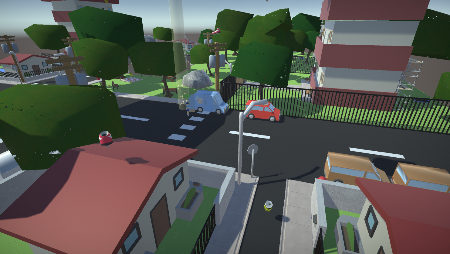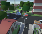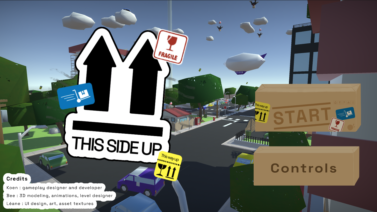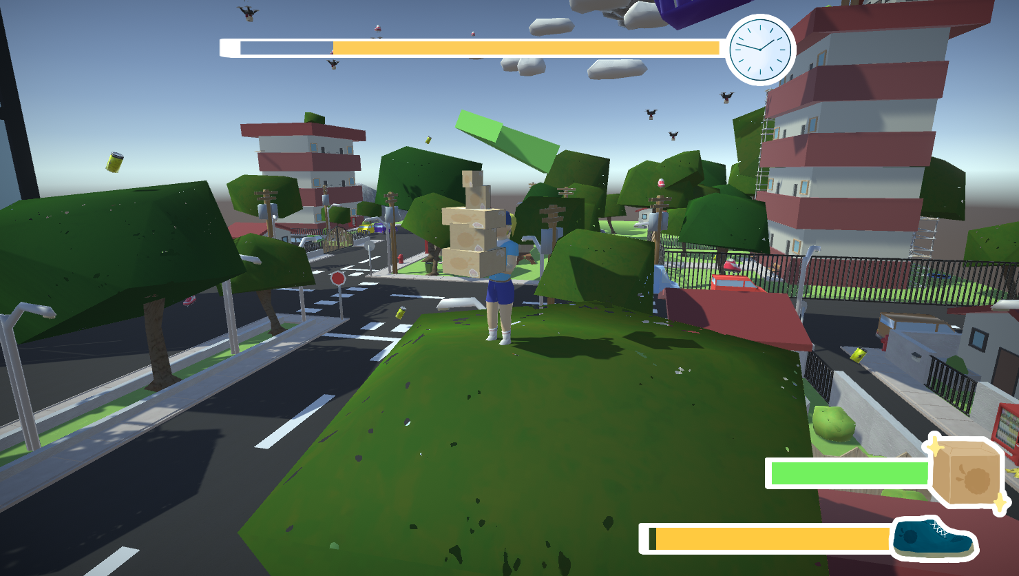This was quite enjoyable, especially given how bouncy and fast everything was. From the different pickups in the game to the bounciness of the walls, this really provided an energetic and fun experience that was also quite challenging. I think one thing to look out for is that some parts of the map can lead to the player getting stuck without anyway to get out (I.e. I got stuck on one of the bushes near a house) so maybe a restart button that allows me to reset from the last package point I delivered to could help. But otherwise, good job!