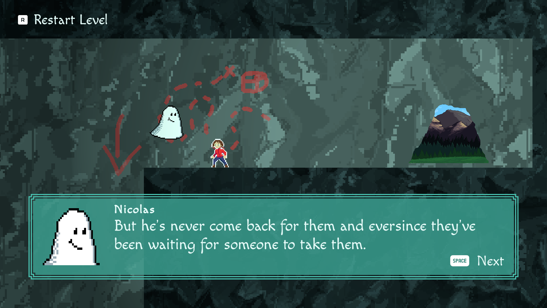 quite a fun platformer, i liked the puzzleish aspects of your game, though i would like to see that a box falling on my head would squish the player. also good job writing it so the ghost has a personality and didn't just feel like a bland npc character.
