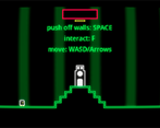 The platforming mechanism is interesting. It took a bit for me to get used to, but was quite fun once I got the hang of it. It would have been interesting to see what you could do with directions other than up, up-left, and up-right, since those were the only ones that actually seemed useful.