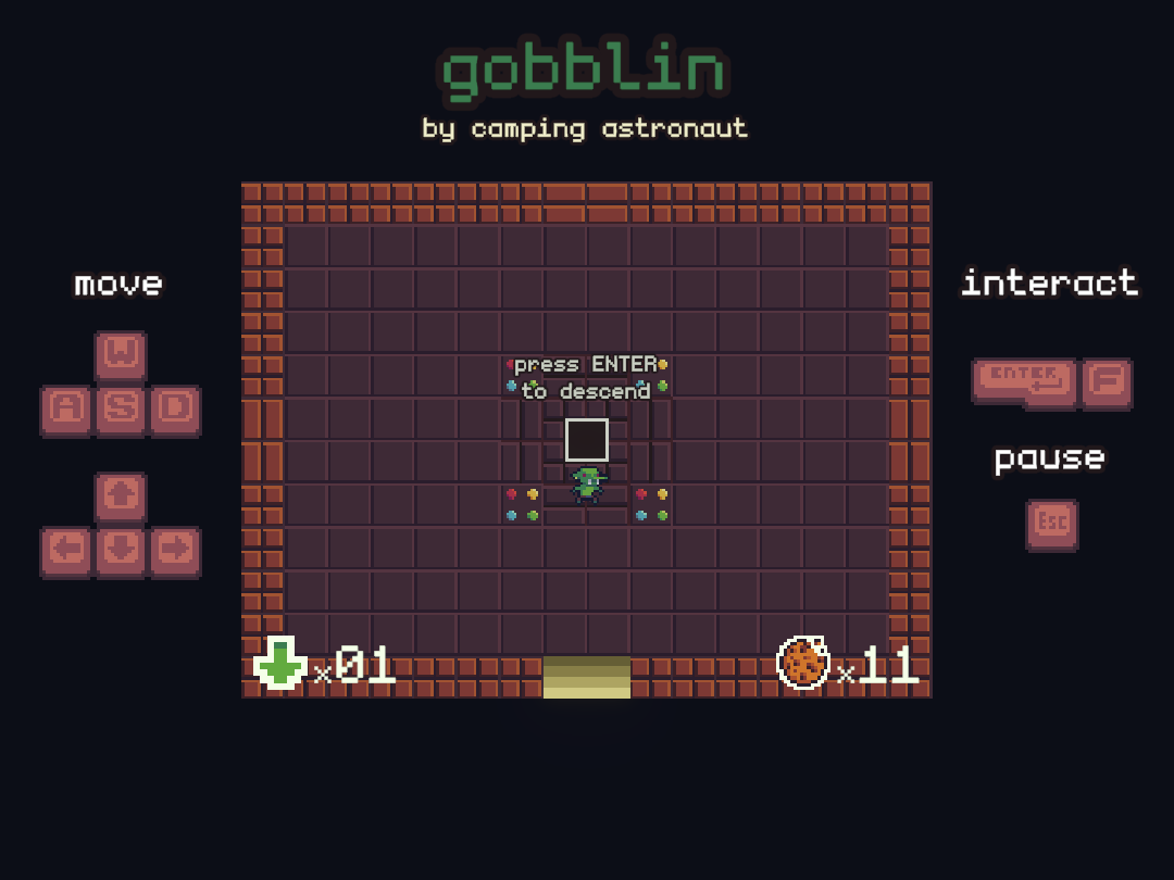 This is an enjoyable game. Reminds me of Binding of Isaac. There does seem to be an issue when you interact with the golden cookie. It seems to kill the goblin and teleport him outside of the map. I feel like this game could be really great if you fix that one bug and decide to add more after the game jam is over. Awesome job!