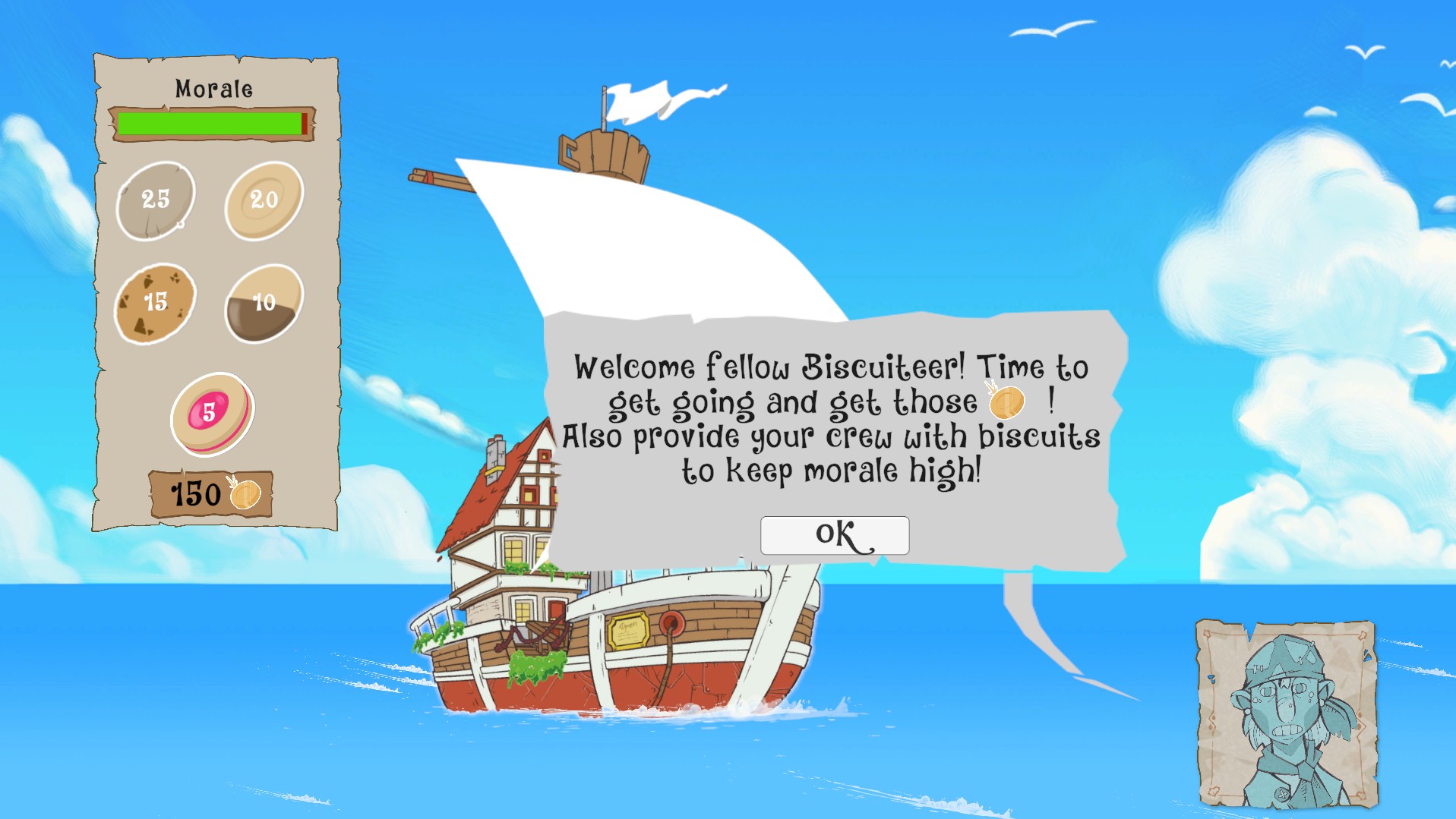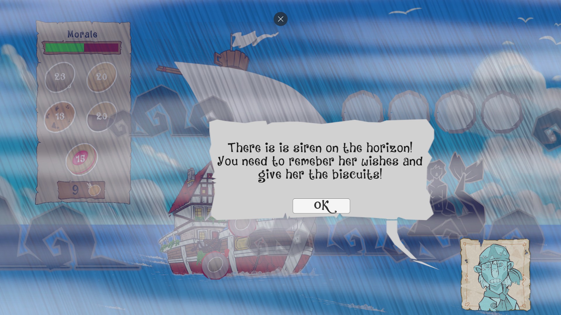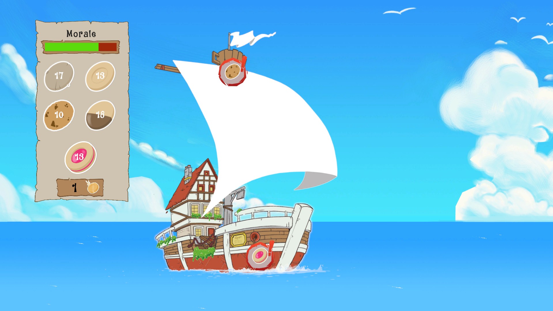 I was confused at first how to feed the crew, didn't realize their thought bubbles were drop targets, but once i figured it out it was smooth sailing from there. I like the variety of encounters. Choked on the boss/final encounter though, couldn't afford enough cookies to keep the crew fed, and being thrown back in the harbor just felt like an infinite loop :D