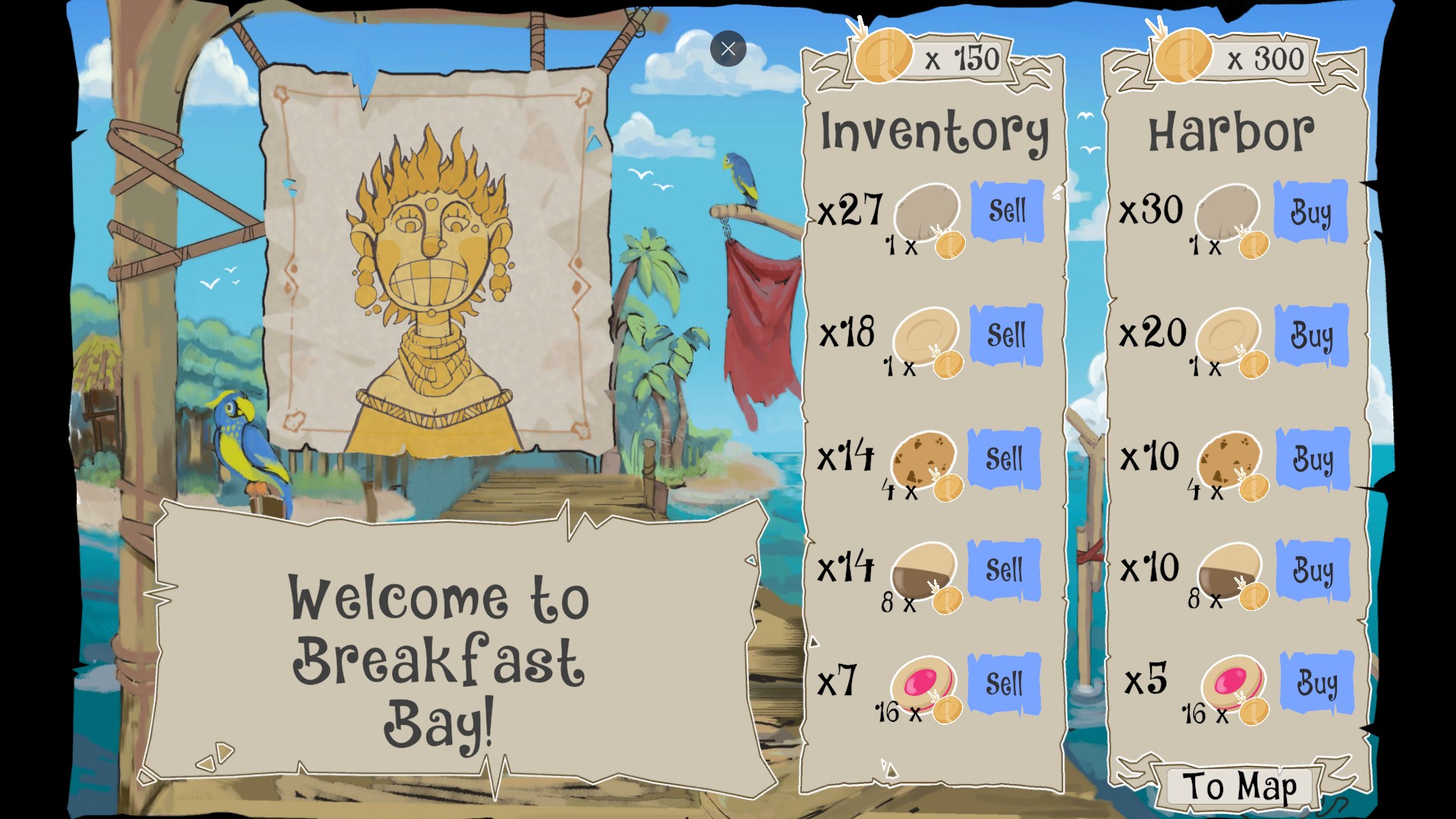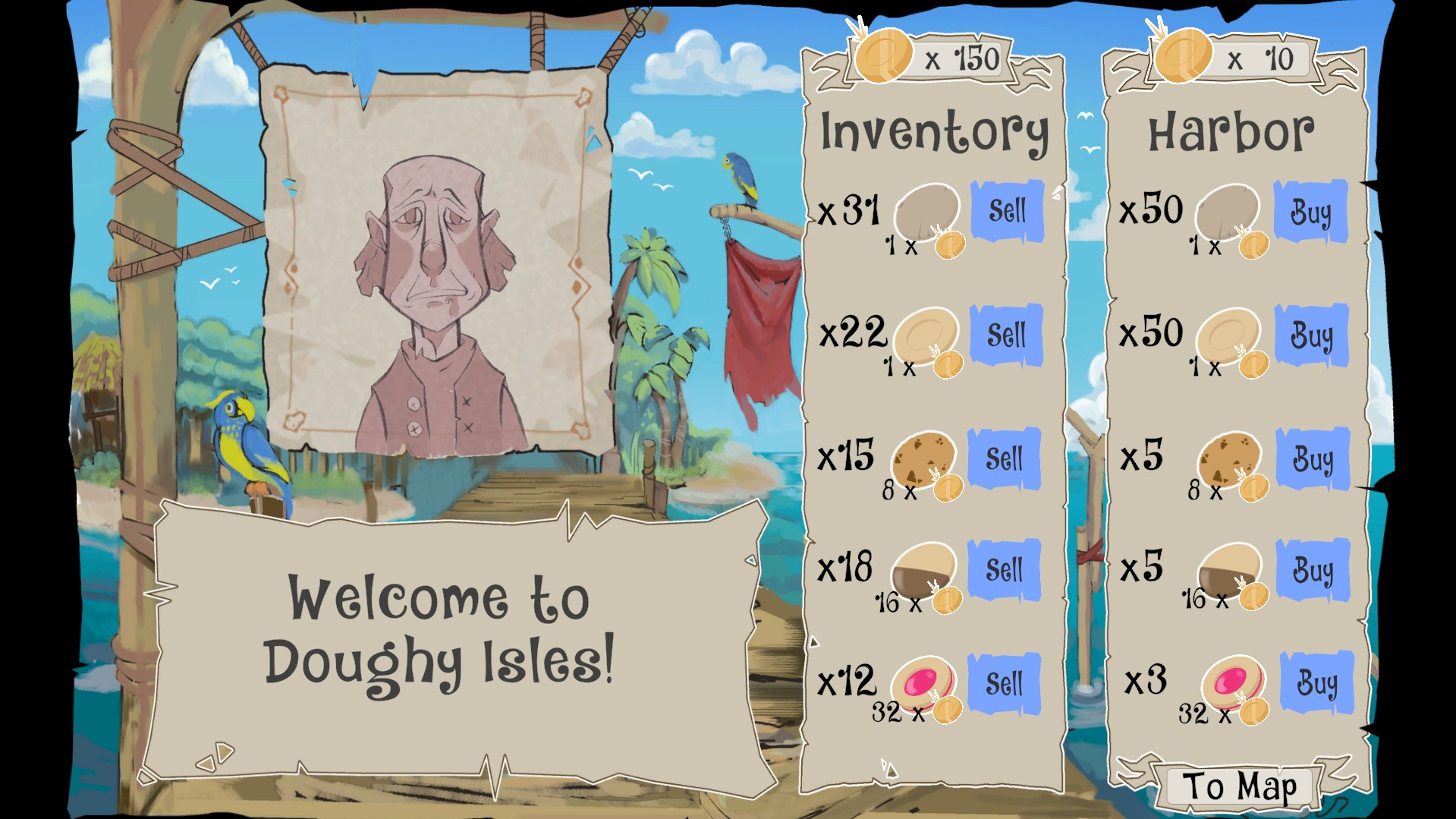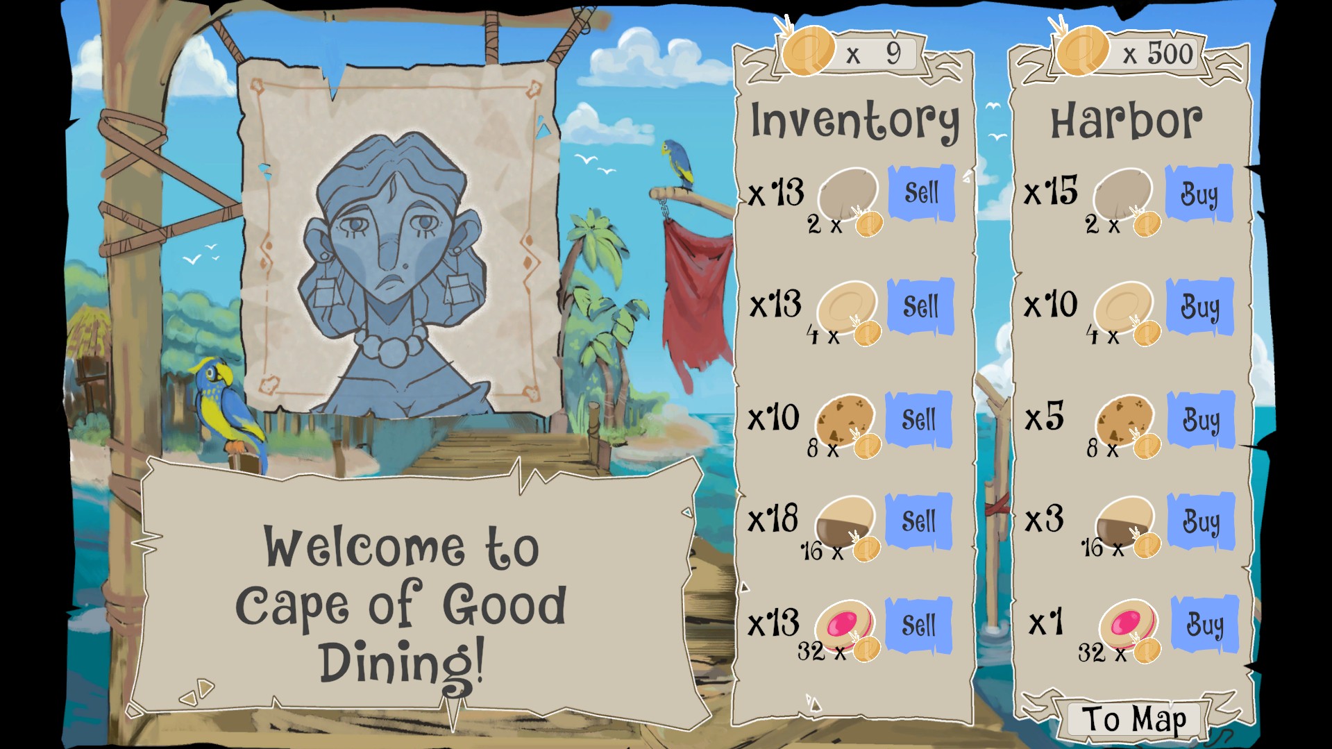 I was confused at first how to feed the crew, didn't realize their thought bubbles were drop targets, but once i figured it out it was smooth sailing from there. I like the variety of encounters. Choked on the boss/final encounter though, couldn't afford enough cookies to keep the crew fed, and being thrown back in the harbor just felt like an infinite loop :D