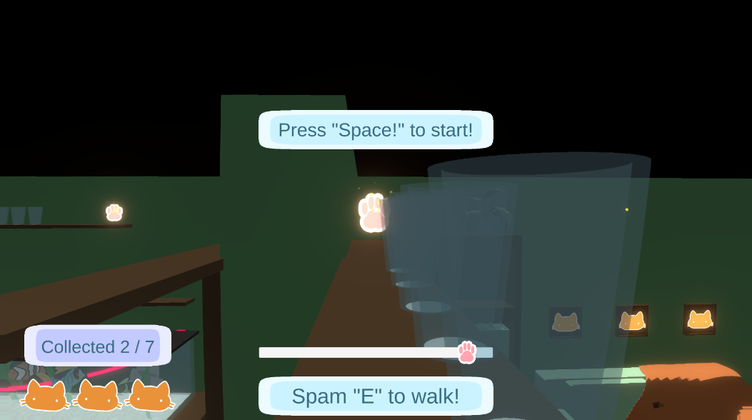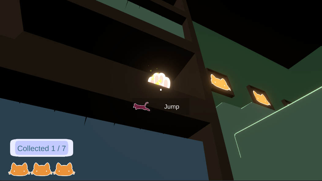 I love the assisted jump; it's brilliant for accessibility. I think the quick time event was a cool addition, but there didn't seem to be much challenge anywhere else in the game. Cute for a cozy cat game. Nice work.
