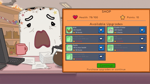 Love the art, hate how every cake I got tried to kill me :( fr though game was really fun and I liked the concept, great job guys!