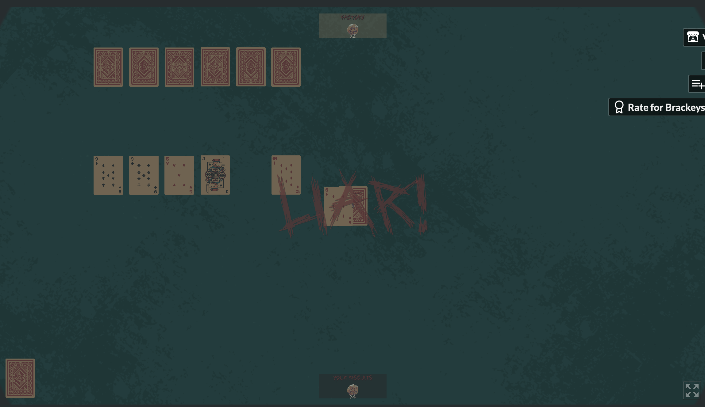As for the game itself, I think it would be helpful to display the card I should play more clearly, maybe on the sides, since I didn’t notice it when I first started. Also, I found that I could always pick “liar” against the enemy AI and it would always be correct—they never seemed to be honest even once 😂.