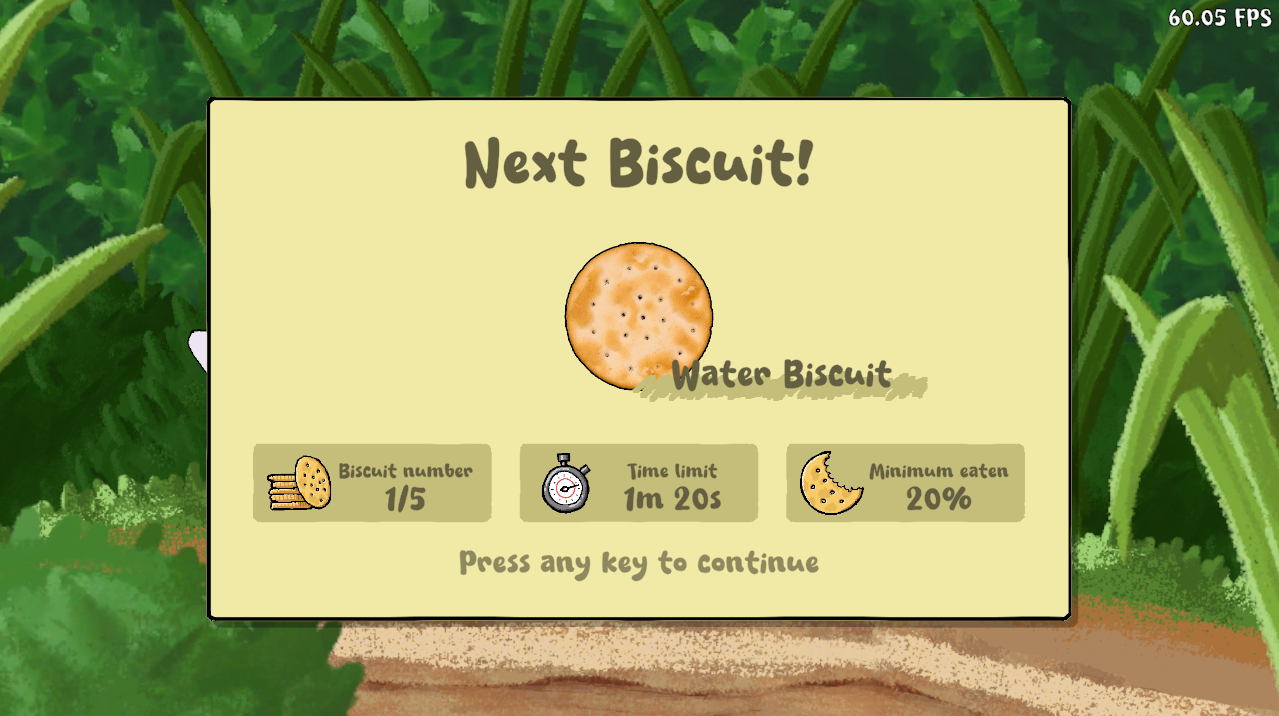 Very unique and fun game! I was definitely very greedy with my bites of the biscuit and didn't deliver some of the orders. The only feedback is that the timer is pretty long; it would be more exciting if there were less time to bite into the biscuit! Overall, a very cute game, and I love all the art!