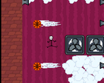 Even though the visuals are simple, they communicate the elements of the level very well - vents blowing air which pushes you, cannons shooting which kills you, walls blocking you, etc. It works.