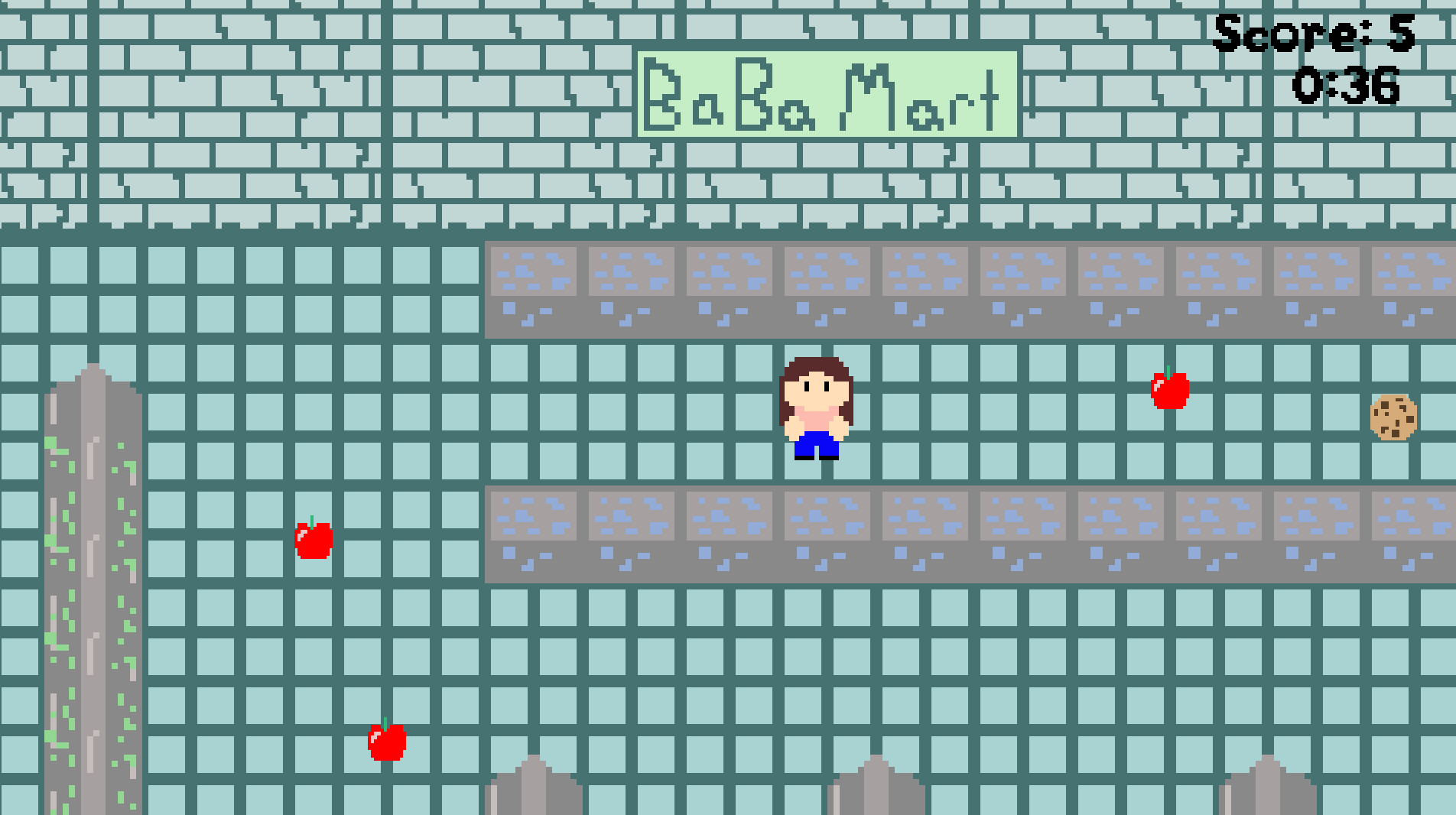 This was a short sweet game to play! The self-made sprites were pretty charming, and I see how taking the risk of missing the checkout in order to collect as much as you can relates with the theme! Pretty good!