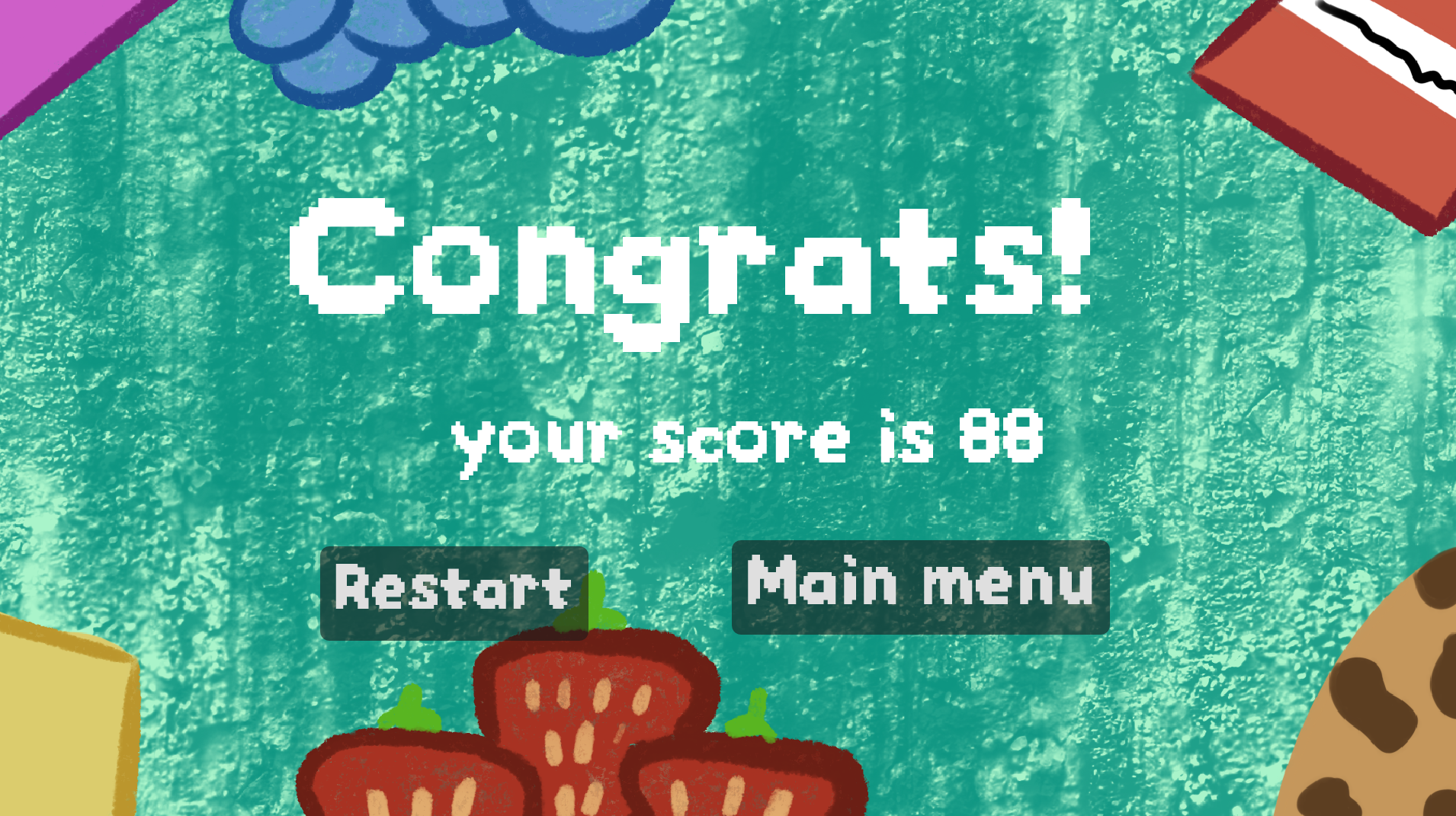 I like the way it takes the theme literaly :D I had the same problem than other comments with the screen, maybe check the canvas settings. :) It would be nice to have a max carry capacity to force the player to come back and risk it even more for the biscuit. I got 88 points ! :D