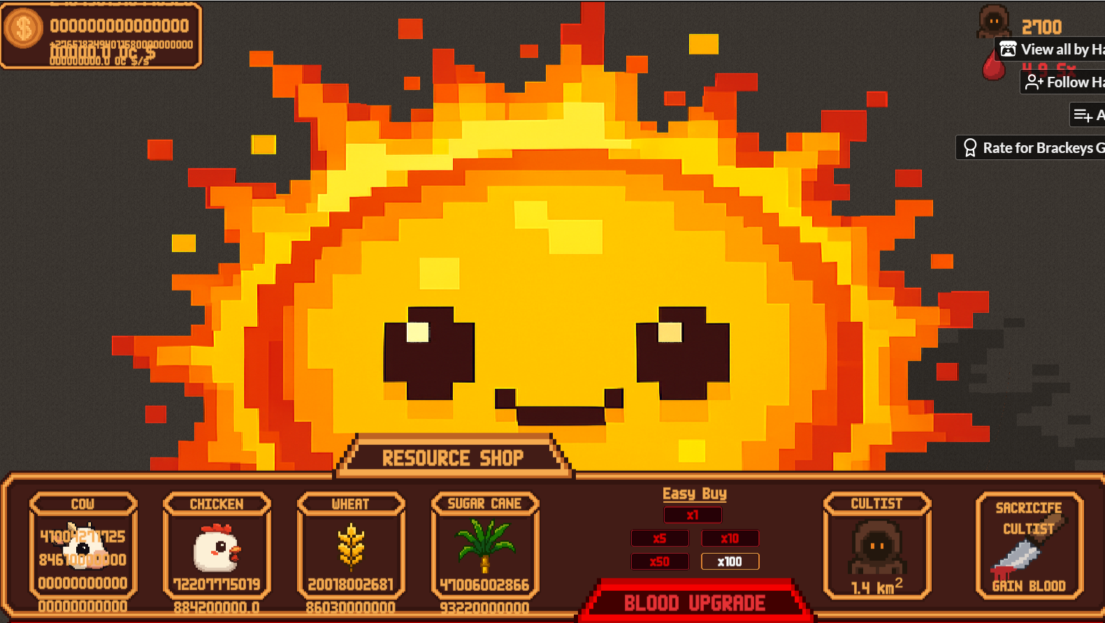 Creating such a UI design in such a short time is commendable, and the sounds and player feedback feel great. At first, I couldn’t figure out the money flow, but after understanding the game loop, I played it until I broke it :) Great job, congratulations! By the way, the Boody Ritual might be bugged — after activating it, I earned enough to activate it again in 2 seconds, and after that, it looked like in the screenshot :)