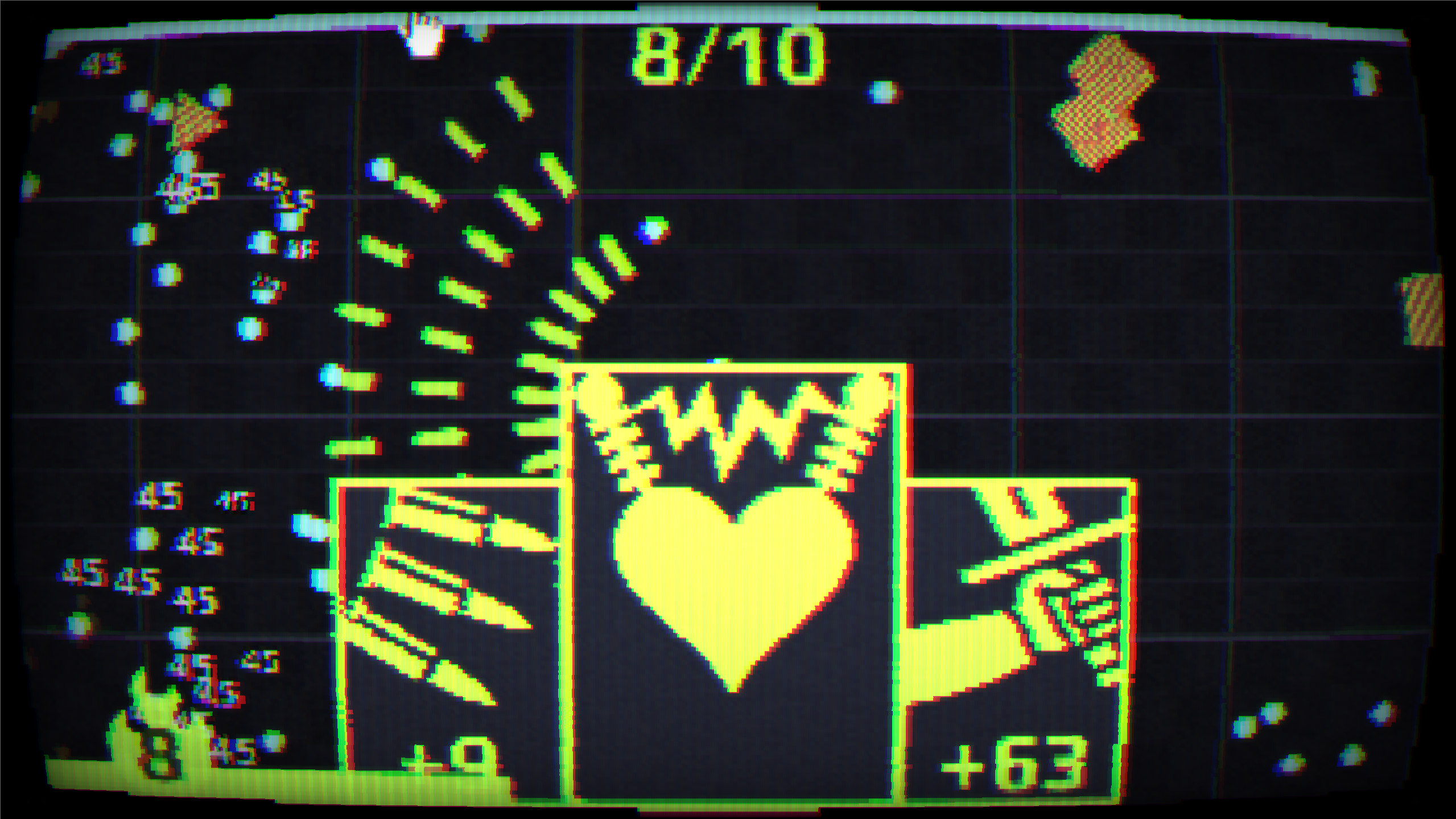 Absolute PEAK of a game, although I couldn't see the health of the player? or maybe i just wasn't looking good enought... Also the post-processing effect that made it look like a retro computer? GREAT idea!!!
