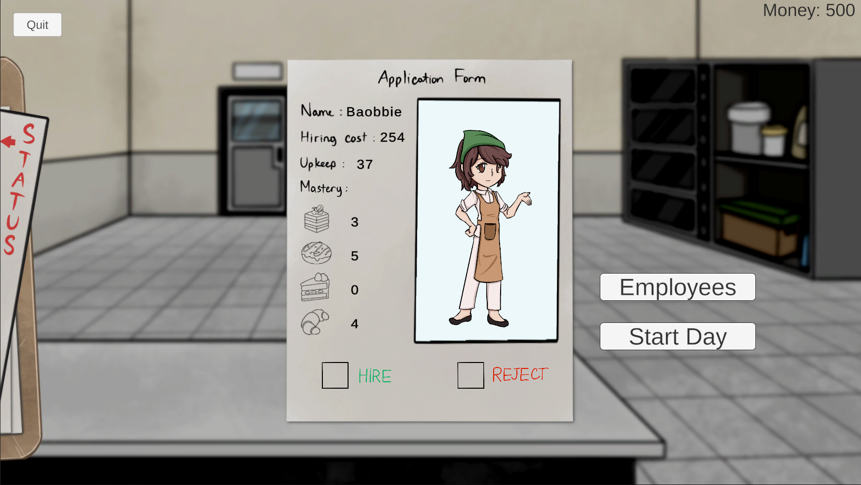 In this game you need to take risk at hiring Mimic to work in your bakery for more Income at the cost of having your human employee got eaten (and even you) or getting busted by Inspectors.